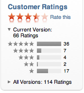 In practical terms, I tend to just ignore the one-star scores because they generally have nothing to do with what I’m interested in — a feel for the quality of the product. What is dangerous are those systems that don’t give you this kind of bar-chart look at the distribution of scores. In that case, the single number score can get seriously distorted, and mislead the shopper.