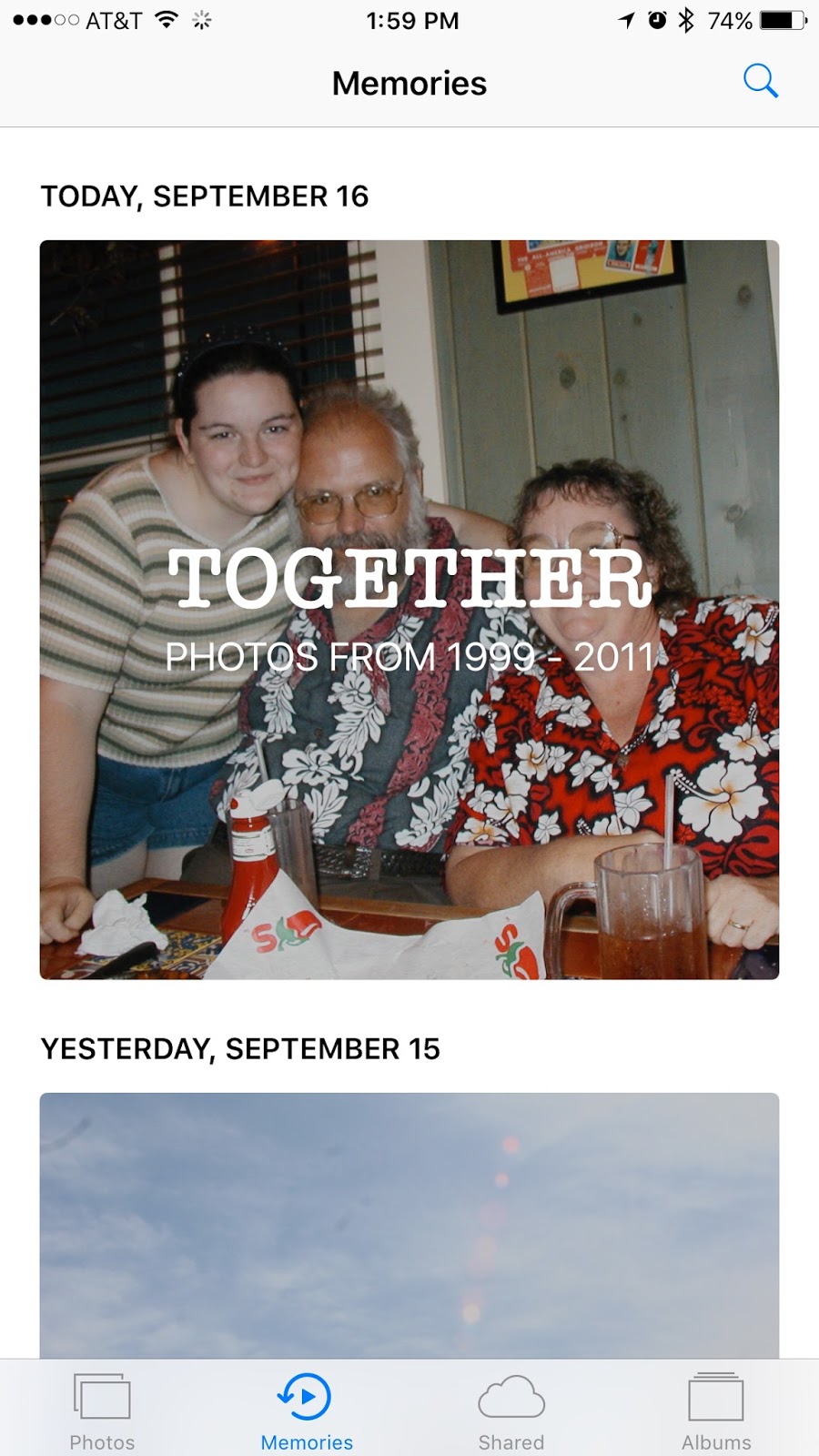 Many features of the new iOS 10 from Apple are nice. Some are “Well, okay. I can live with that.” But the one that has blown me away is the improved Photos. In particular, there’s a Memories feature that you have to try out.